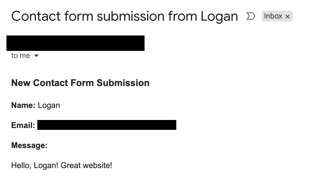 }Here's what the contact form looks like when someone fills it out: